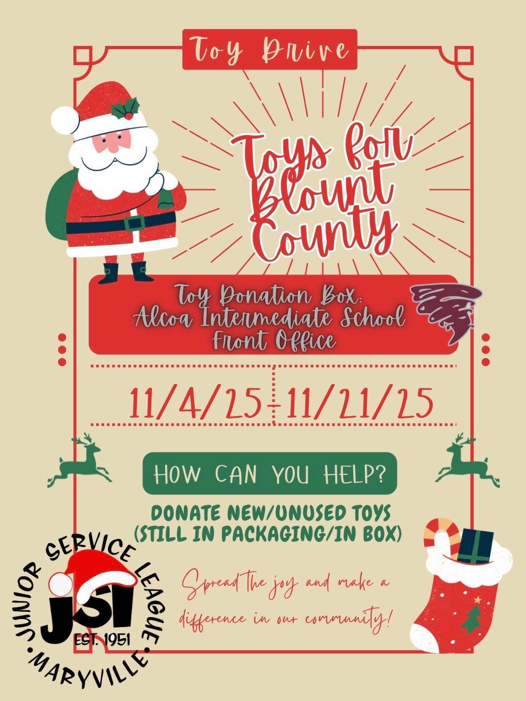 Junior Service League Toy Drive AIS has a Toy Drive Donation Box in our front office, now through November 21st. Published November 10, 2025 Print