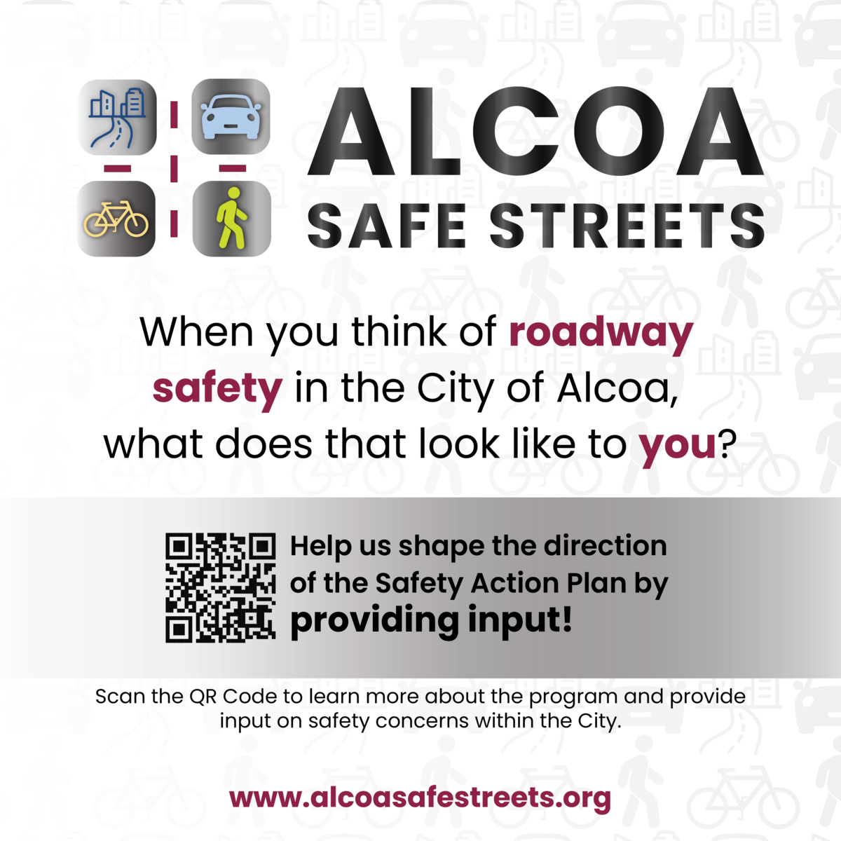 City of Alcoa's Safety Action Plan Alcoa families: The City is developing a Safety Action Plan and needs your input! Help us shape a safer community for our students and neighbors. See the attached graphic for more info on how to get involved. Alcoa Safe Streets Published January 8, 2026 Print